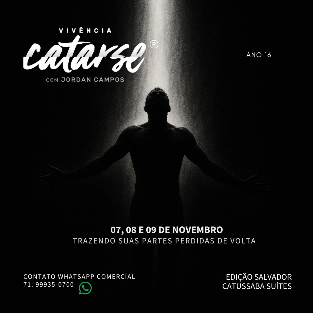 Jordan Campos levará você a um processo terapêutico de várias horas seguidas da sua melhor terapia prática. A Vivência Catarse vem ajudando inúmeras pessoas a se reconectar com sua essência, encontrar clareza mental, superar traumas, limitações, medos, baixa autoestima, rompimentos e entender de vez como cérebro e mente podem trabalhar para você.
